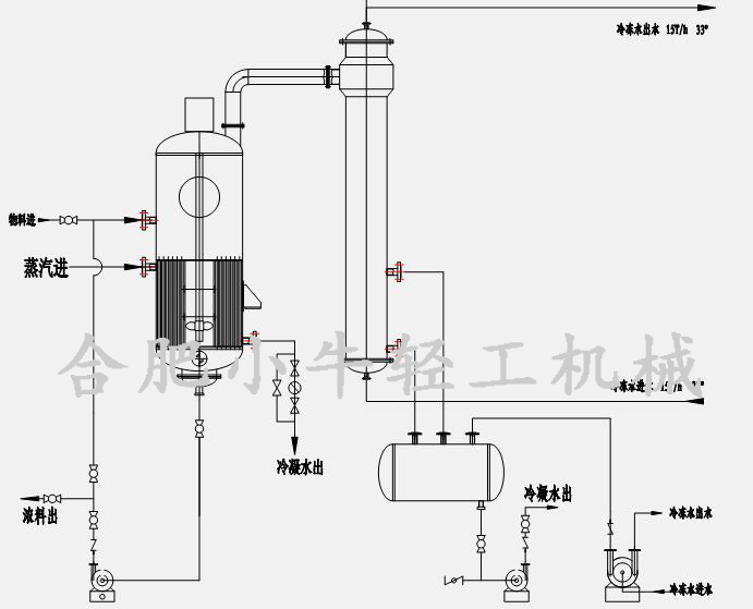 中央循環(huán)管式蒸發(fā)器屬于自然循環(huán)型的蒸發(fā)器,由于是傳熱而產(chǎn)生壓力差形成自然循環(huán)而將其水份蒸發(fā)從而達(dá)到濃縮的目的,所以結(jié)構(gòu)簡(jiǎn)單操作方便,液面容易控制。中央循環(huán)管式蒸發(fā)器是從水平加熱室及蛇管加熱室蒸發(fā)器發(fā)展而來(lái)。相對(duì)于這些老式蒸發(fā)器而言,它具有溶液循環(huán)好、傳熱速率快等優(yōu)點(diǎn),同時(shí)由于結(jié)構(gòu)緊湊、制造方便,應(yīng)用十分廣泛,有“標(biāo)準(zhǔn)蒸發(fā)器”之稱(chēng)。但實(shí)際上由于結(jié)構(gòu)的限制,循環(huán)速度一般在0.4m/s-0.5m/s以下;由于溶液不斷循環(huán),使加熱管內(nèi)溶液始終接近完成液的濃度,故有溶液粘度大、沸點(diǎn)高等缺點(diǎn),此外,蒸發(fā)器的加熱室不易清洗。中央循環(huán)管式蒸發(fā)器適用于蒸發(fā)結(jié)垢不嚴(yán)重、有少量結(jié)晶析出和腐蝕性較小的溶液。